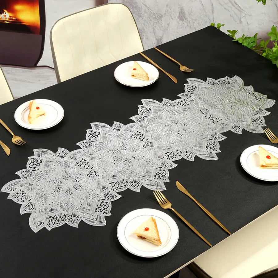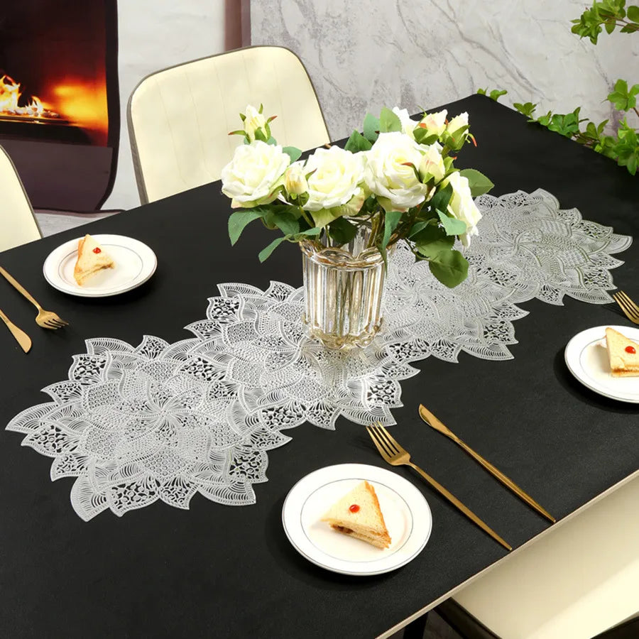 Christmas Floral Table Flag PVC Hollow Gold Embossing Irregular Dining Table Mat Heat Resistant Non-Slip Washable Hotel Table Mat