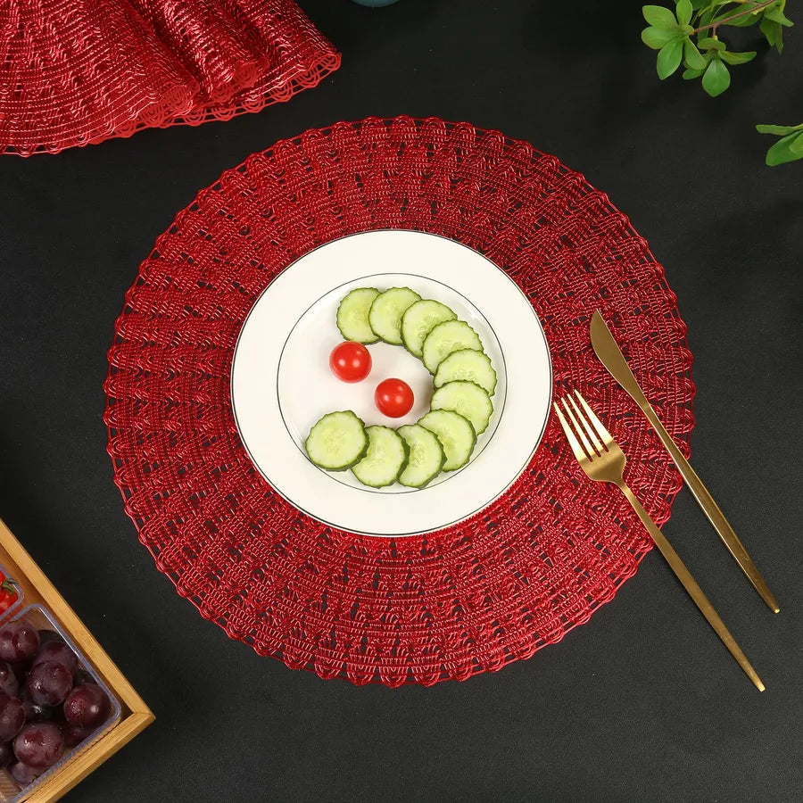 Nordic Style Round PVC Gold Stamping Dining Table Mat Hotel Grade Heat Resistant Decorative Table Pad American Pattern