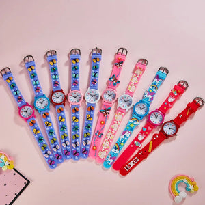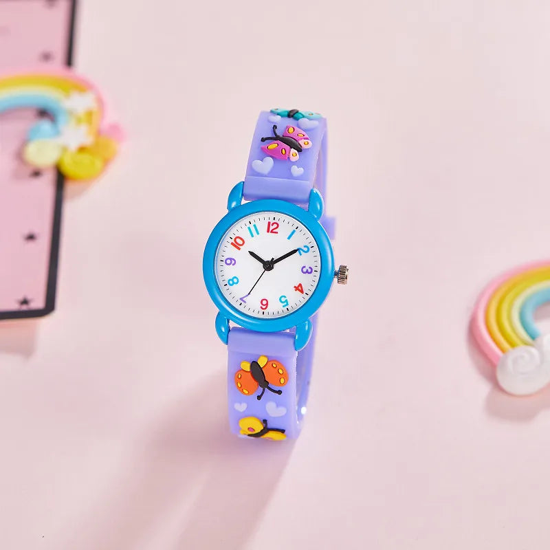 cartoon children's color simple clear digital face girls butterfly kindergarten silicone gift quartz watch