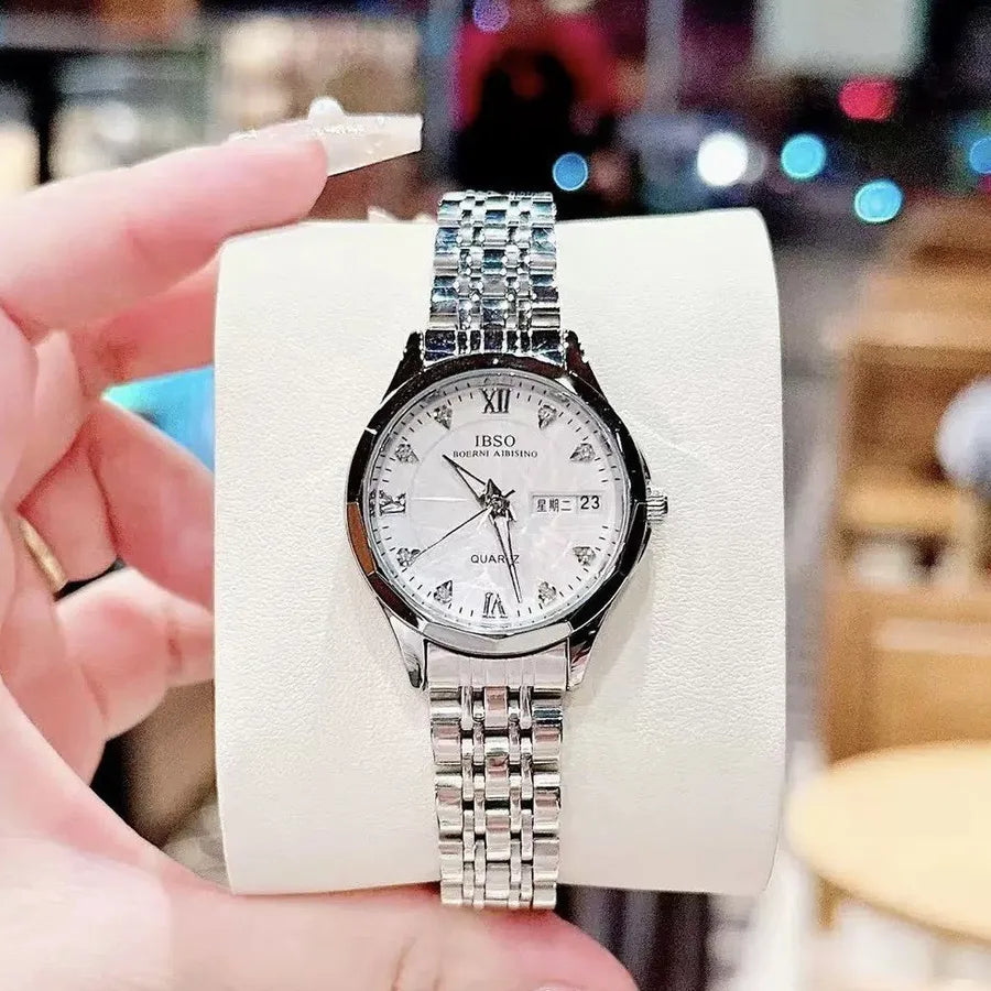 Classic Women's Watch IBSO Love Thought Displaying Day Calendar Butterfly Double Buckle Quartz Business Style Round Dial Ladies' Watch