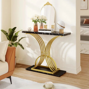 Featuring a sturdy and lightweight iron frame, this console table is ideal for organizing different essentials in a neat manner. The golden frame looks elegant while the black marble top and slip-resistant base make it even more special.