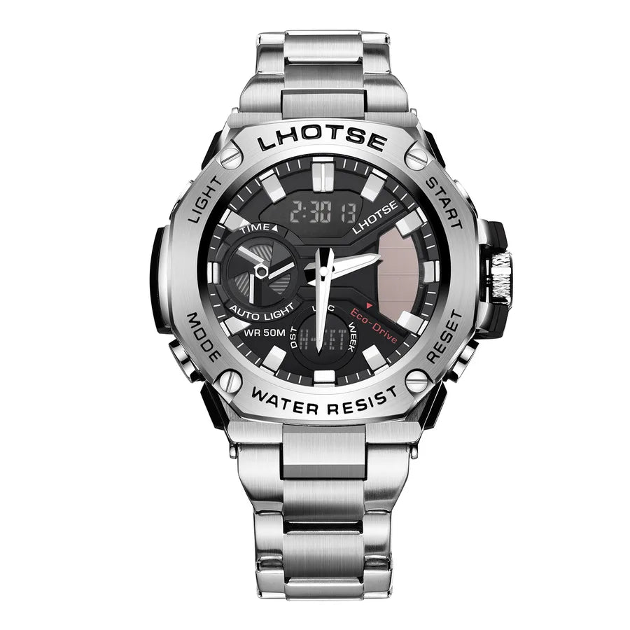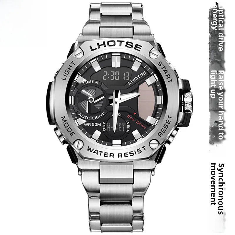 Light kinetic energy Steel & Heart Trend sports waterproof steel belt men's Quartz Electronic double display watch wholesale