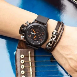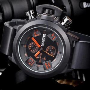 This ultra-modern military watch features a brawny round case and multifunctional luminous display showing time in darkness. On top of that, it has an amazing 3D display, analog pointers and silicone strap that is breathable and wear-resistant.